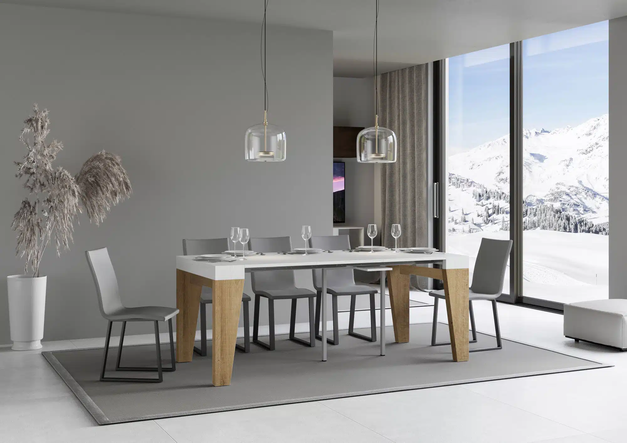 La consolle allungabile Naxy Mix Small può essere facilmente trasformata in un ampio tavolo da pranzo lungo fino a 196 cm, in grado di ospitare 10 persone.