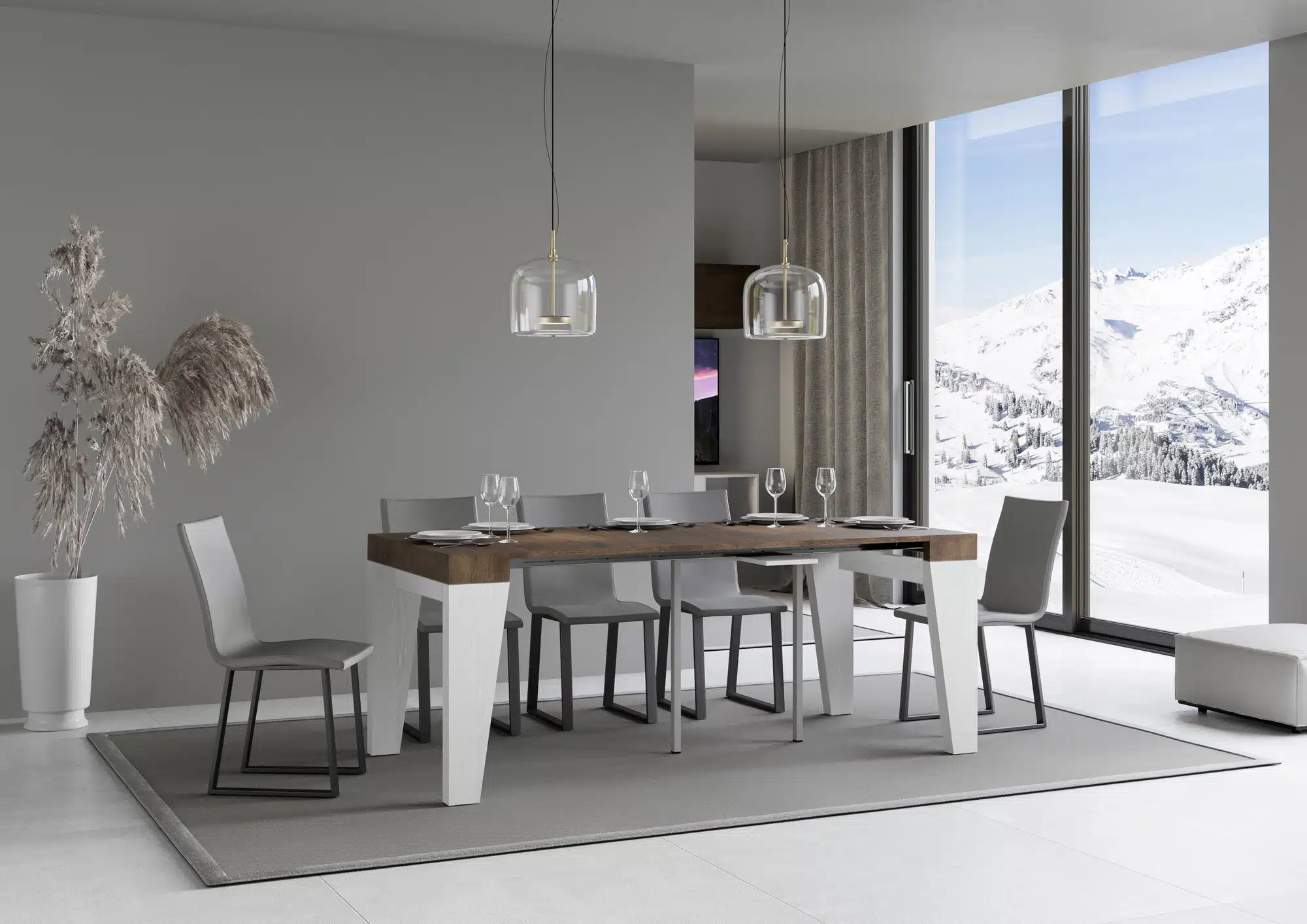 Consolle allungabile 90×40/196 cm Naxy Mix Small piano noce – struttura bianco frassino