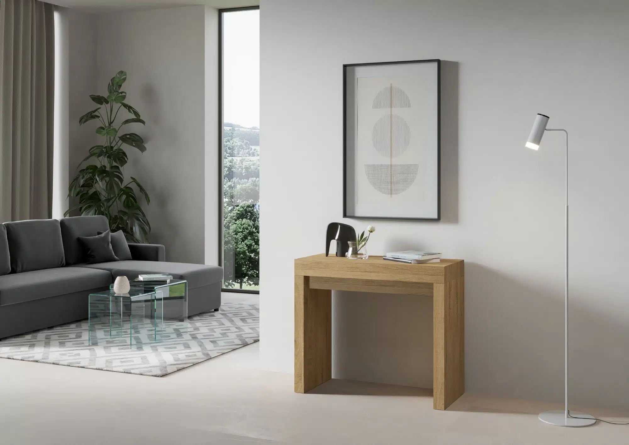 Consolle allungabile Roxell Small, versatile e robusta, un complemento perfetto per ogni ambiente della casa: ingresso, cucina, sala da pranzo, soggiorno o corridoio.