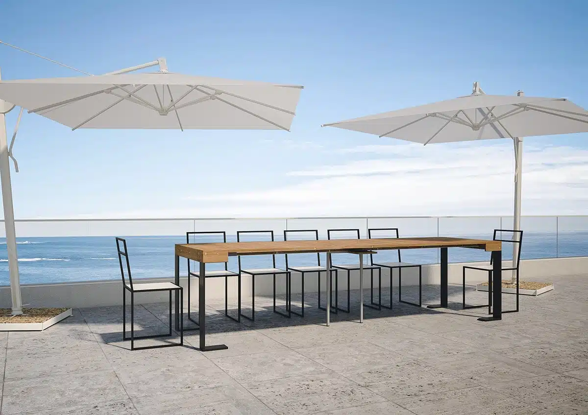 Il sistema di allunghe con guide telescopiche in alluminio e il sostegno centrale in dotazione rendono la consolle stabile e robusta.