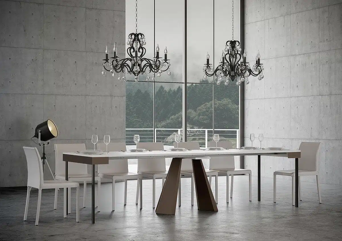 La consolle allungabile Diamante Evolution può essere facilmente trasformata in un ampio tavolo da pranzo lungo fino a 300 cm, in grado di ospitare 14 persone.