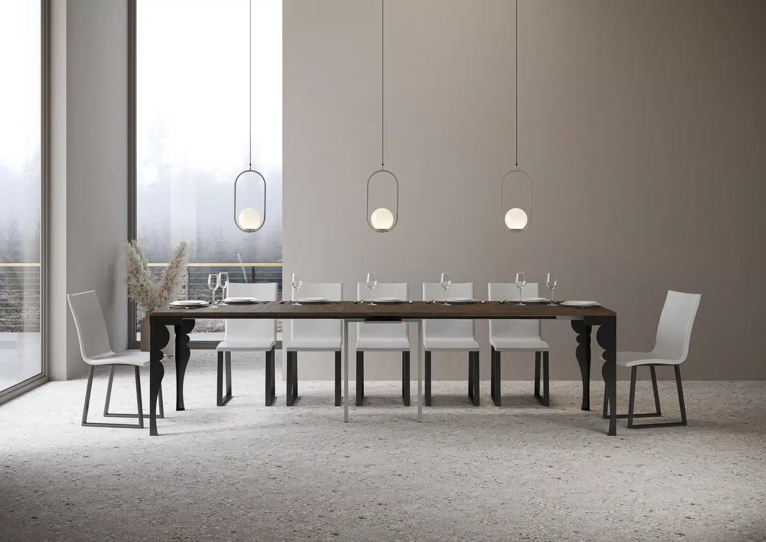 La consolle allungabile Paxon Evolution può essere facilmente trasformata in un ampio tavolo da pranzo lungo fino a 300 cm, in grado di ospitare 14 persone.