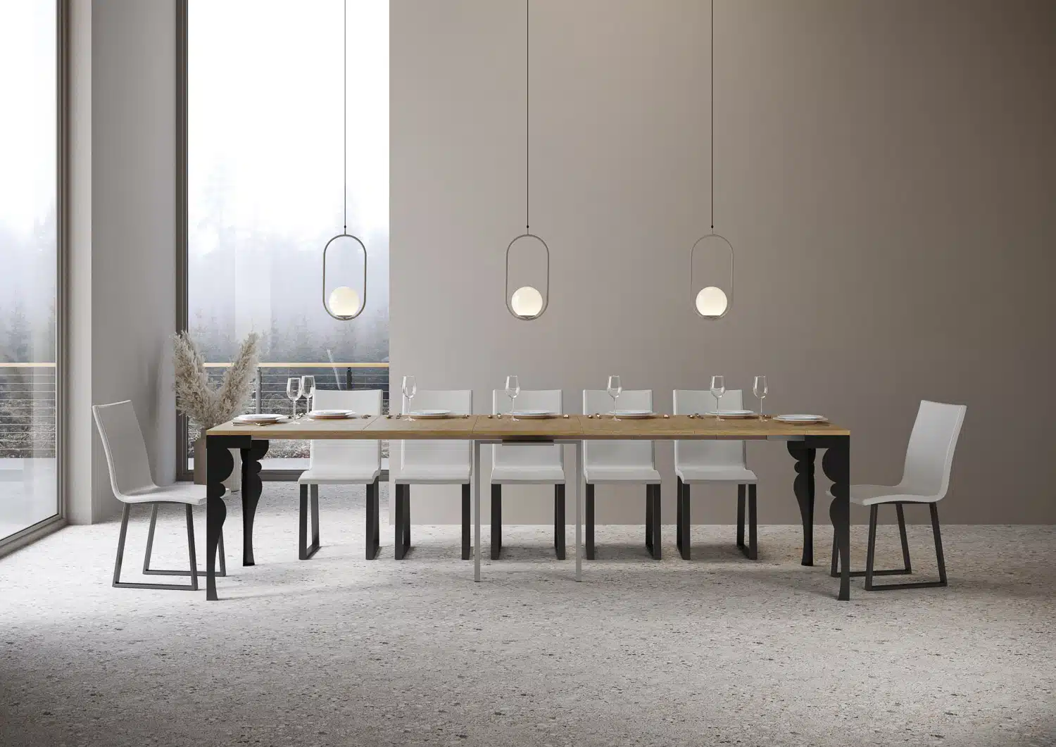 La consolle allungabile Paxon Evolution può essere facilmente trasformata in un ampio tavolo da pranzo lungo fino a 300 cm, in grado di ospitare 14 persone.