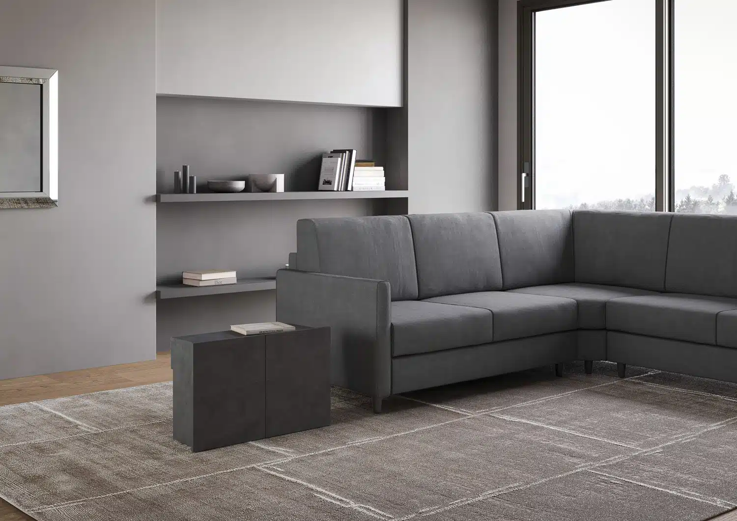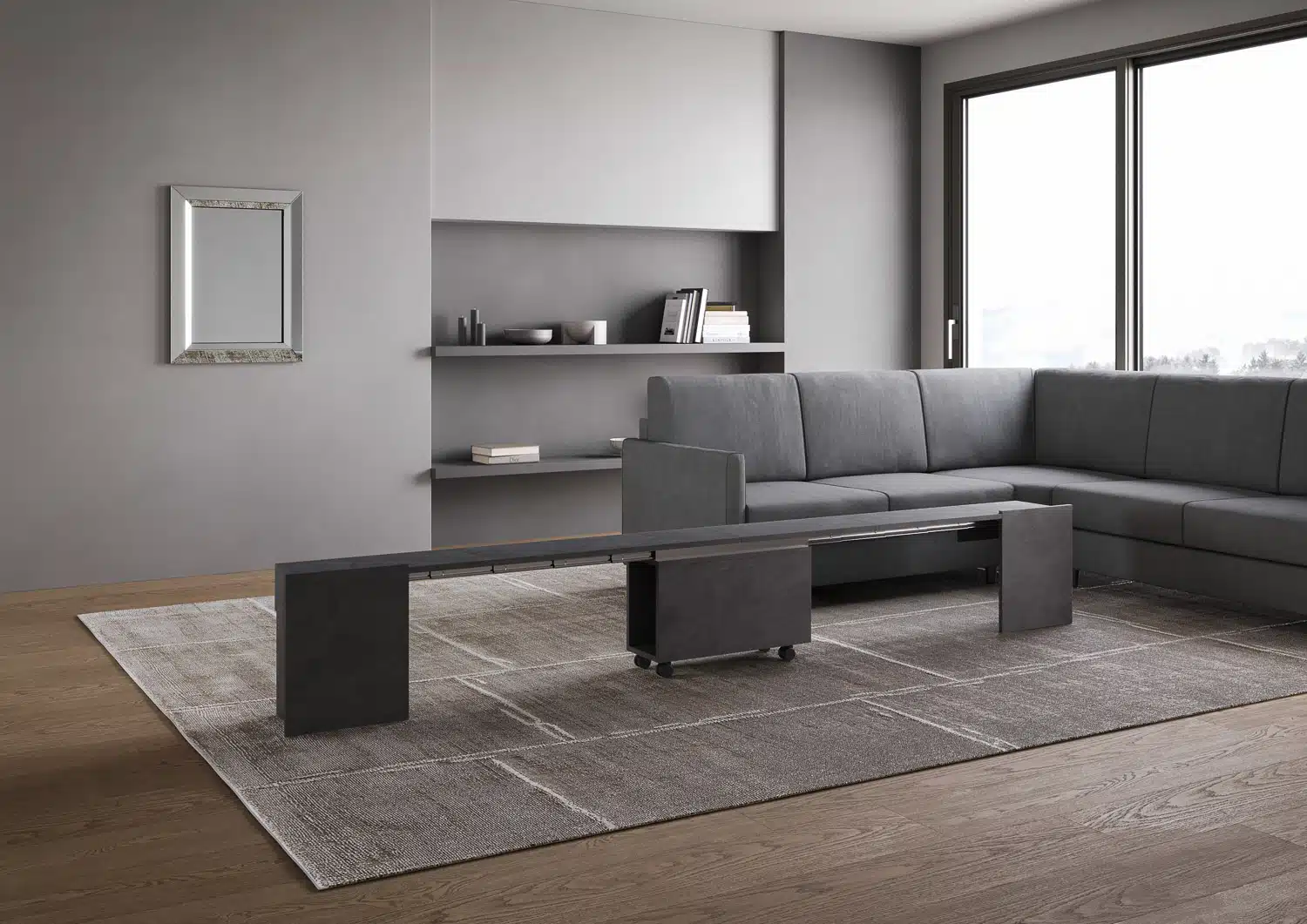 Consolle allungabile 90×42/302 cm Evolve antracite spatolato allunghe interne con panca inferiore