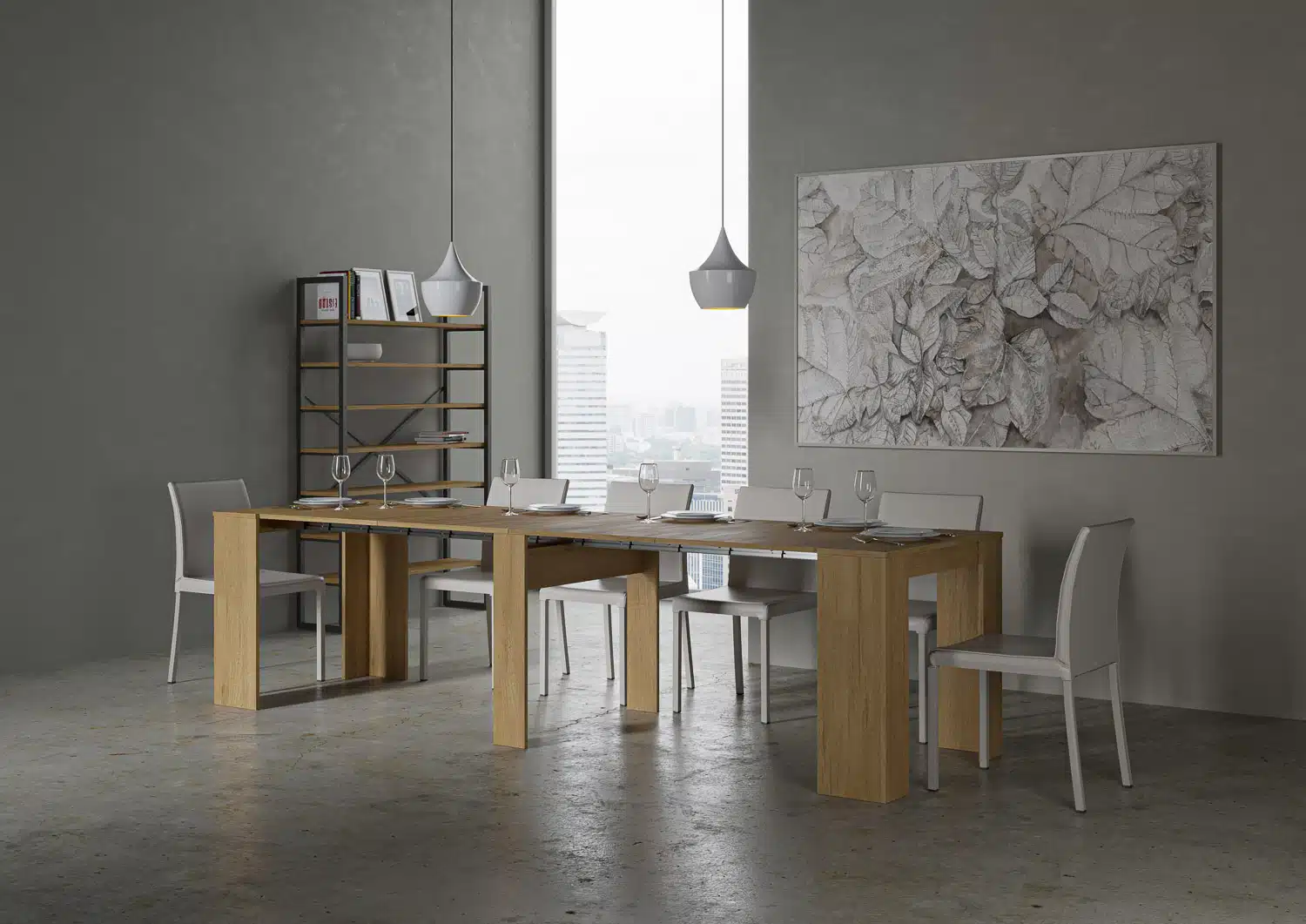 La consolle allungabile Venus può essere facilmente trasformata in un ampio tavolo da pranzo lungo fino a 296 cm, in grado di ospitare 14 persone.