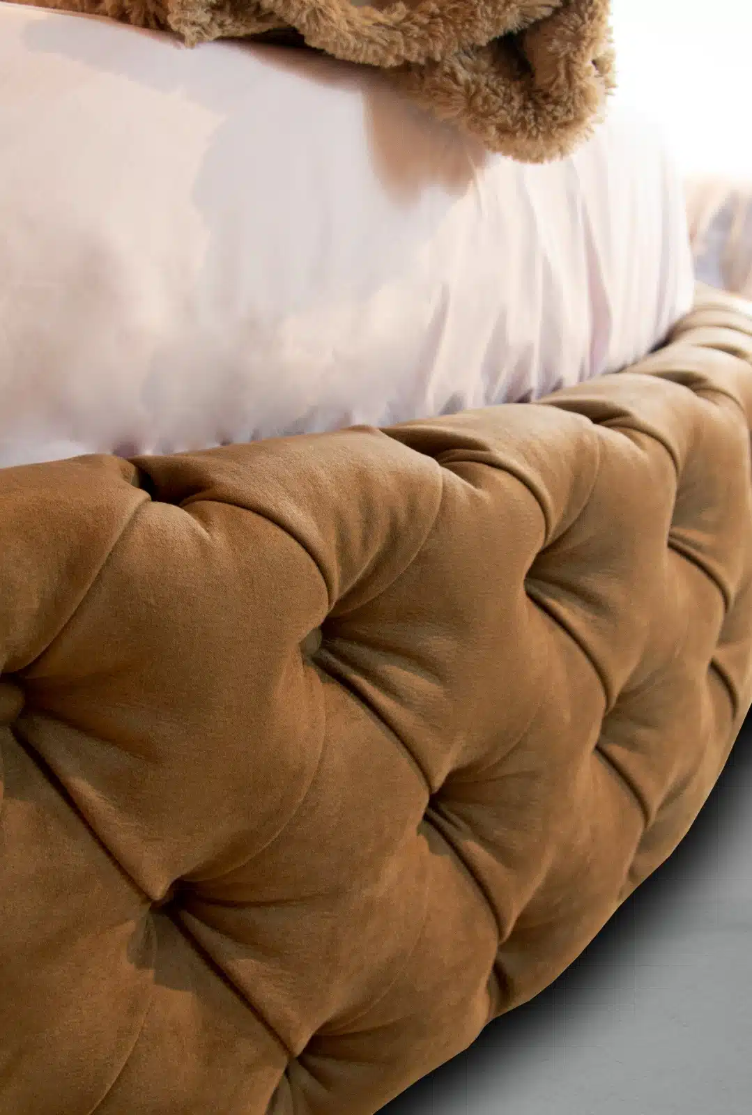 Scegliere il letto rotondo capitonnè Imperial significa investire in un pezzo d’arredo che non passa inosservato. La sua forma unica e la pregiata lavorazione capitonnè creano un punto focale di grande impatto visivo, trasformando la tua camera da letto in un ambiente lussuoso e accogliente. Ogni dettaglio è curato con precisione artigianale, garantendo non solo bellezza estetica ma anche una qualità costruttiva superiore che dura nel tempo.