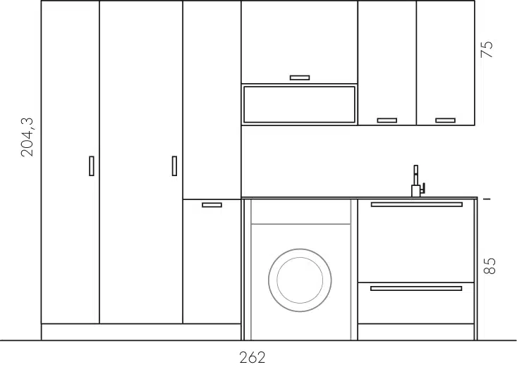 - Ampie Dimensioni: Con L 262 x P 63/20,8 cm, offre una soluzione estesa e integrata per ogni esigenza di lavanderia.