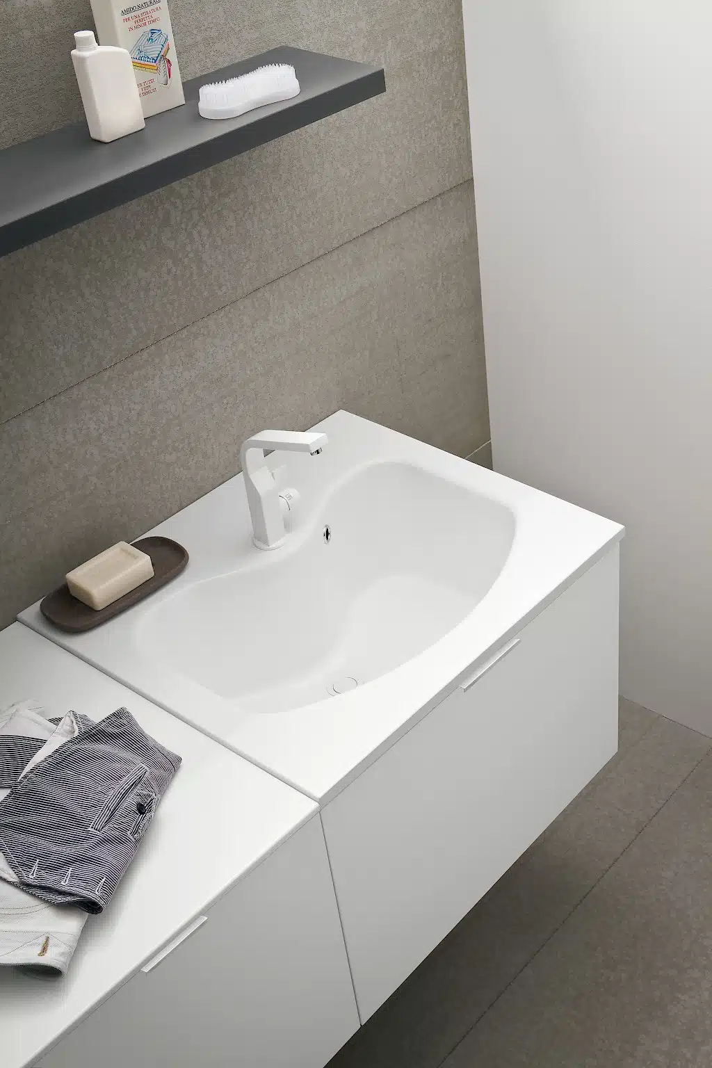 - Lavatoio incasso soprapiano LOOK P63 in Mineralmarmo: 71 x 30 x 63,2 cm – Un elemento di design e funzionalità, resistente e facile da pulire.