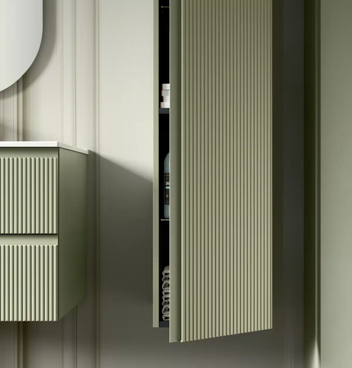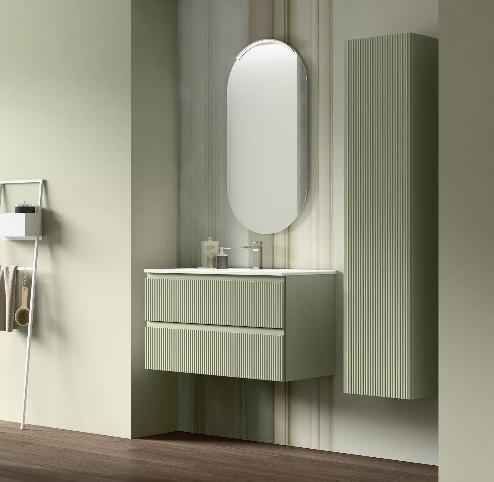 Il mobile bagno cannettato 80 cm maniglia Gola Arcom Minimal COMP_13 con maniglia Gola Vertical integrata è una composizione sospesa di design dalle linee pulite e contemporanee, completa di colonna abbinata L 35 cm. Progettata per ambienti contemporanei, questa soluzione integrata è prodotta in Italia nel rinomato Distretto del Mobile di Pordenone, offrendo standard manifatturieri di eccellenza.