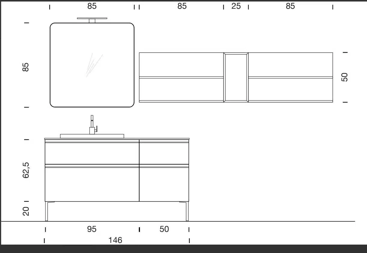 Le composizioni proposte sono formate da moduli già assemblati in fabbrica, molto facili da fissare a parete per facilitare il montaggio. Possiamo apportare modifiche personalizzate e adattare la composizione proposta alle vostre esigenze in funzione di dimensioni, piani, lavabi, colonne, pensili, specchi, colori e finiture. A disposizione anche il servizio di disegno con rendering fotografico gratuito.