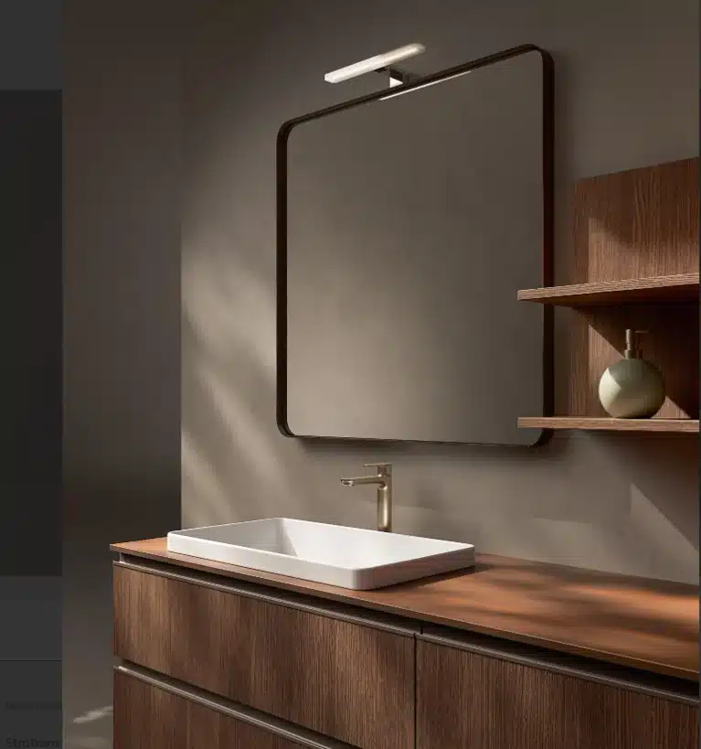 - Specchiera Rotonda Round-K: Un elemento di design unico che non solo arreda, ma illumina e amplia visivamente lo spazio del tuo bagno.