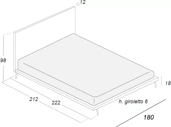 - Giro letto: Rete ring strutturale, poliuretano espanso D. 25 e vellutino accoppiato