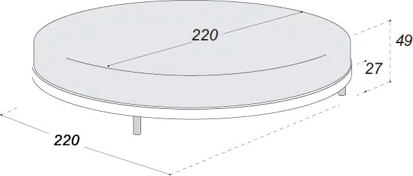 Dimensioni Letto: Diametro complessivo di 220 cm, Altezza del giroletto da terra di 27 cm.