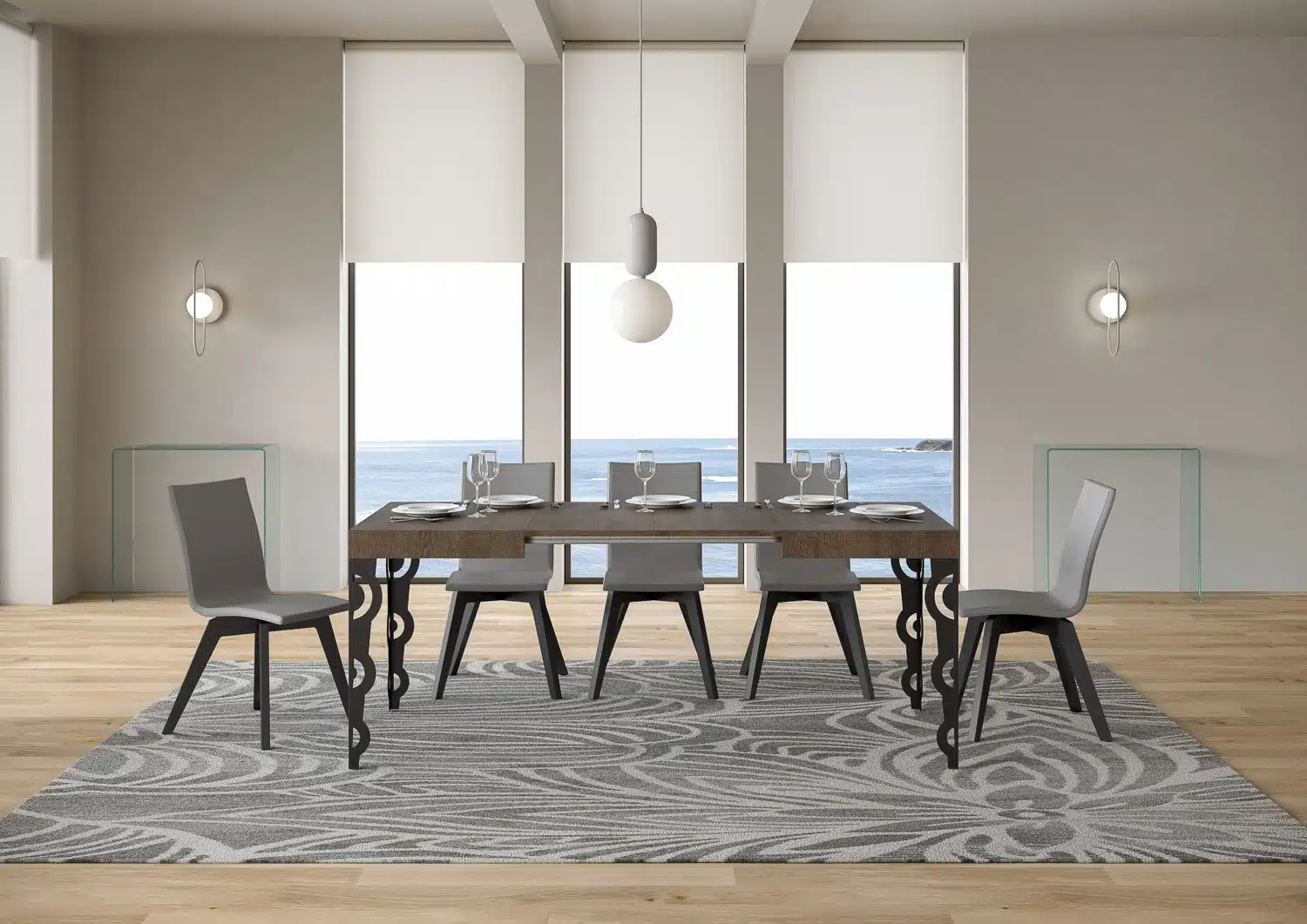 Il tavolo allungabile Karamay è in grado di estendersi progressivamente fino a 204 cm capace di ospitare 10 persone.