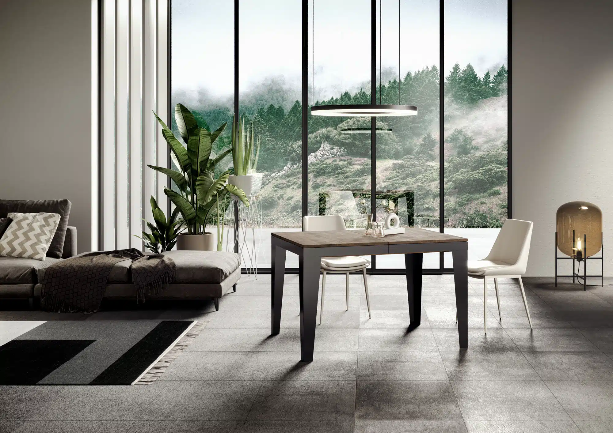 Tavolo allungabile Flame Evolution da 120 cm, dal design lineare, semplice ed essenziale, si adatta a qualsiasi stile di arredamento e si rivela la scelta ideale sia come tavolo da pranzo che come elemento d’arredo per il soggiorno, dove poter accogliere i propri ospiti con stile.