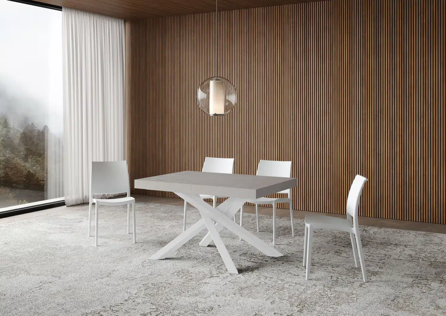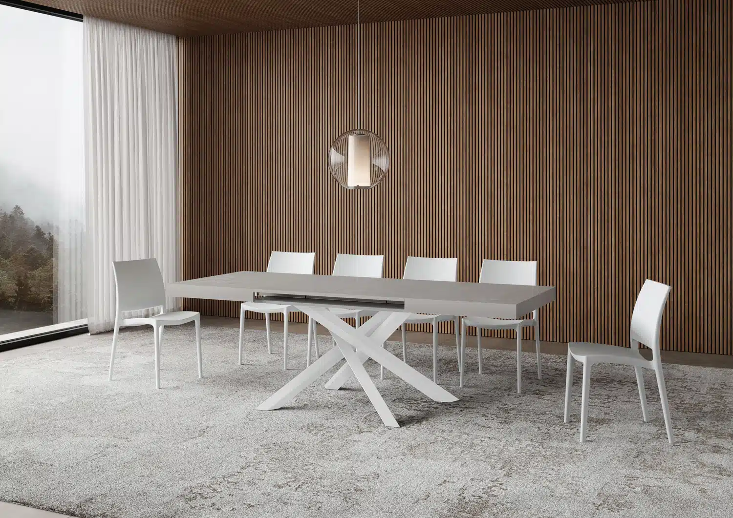 Tavolo allungabile Volantis da 140 cm, dal design moderno dallo stile sofisticato, si adatta a qualsiasi stile di arredamento e si rivela la scelta ideale sia come tavolo da pranzo che come elemento d’arredo per il soggiorno, dove poter accogliere i propri ospiti con stile.