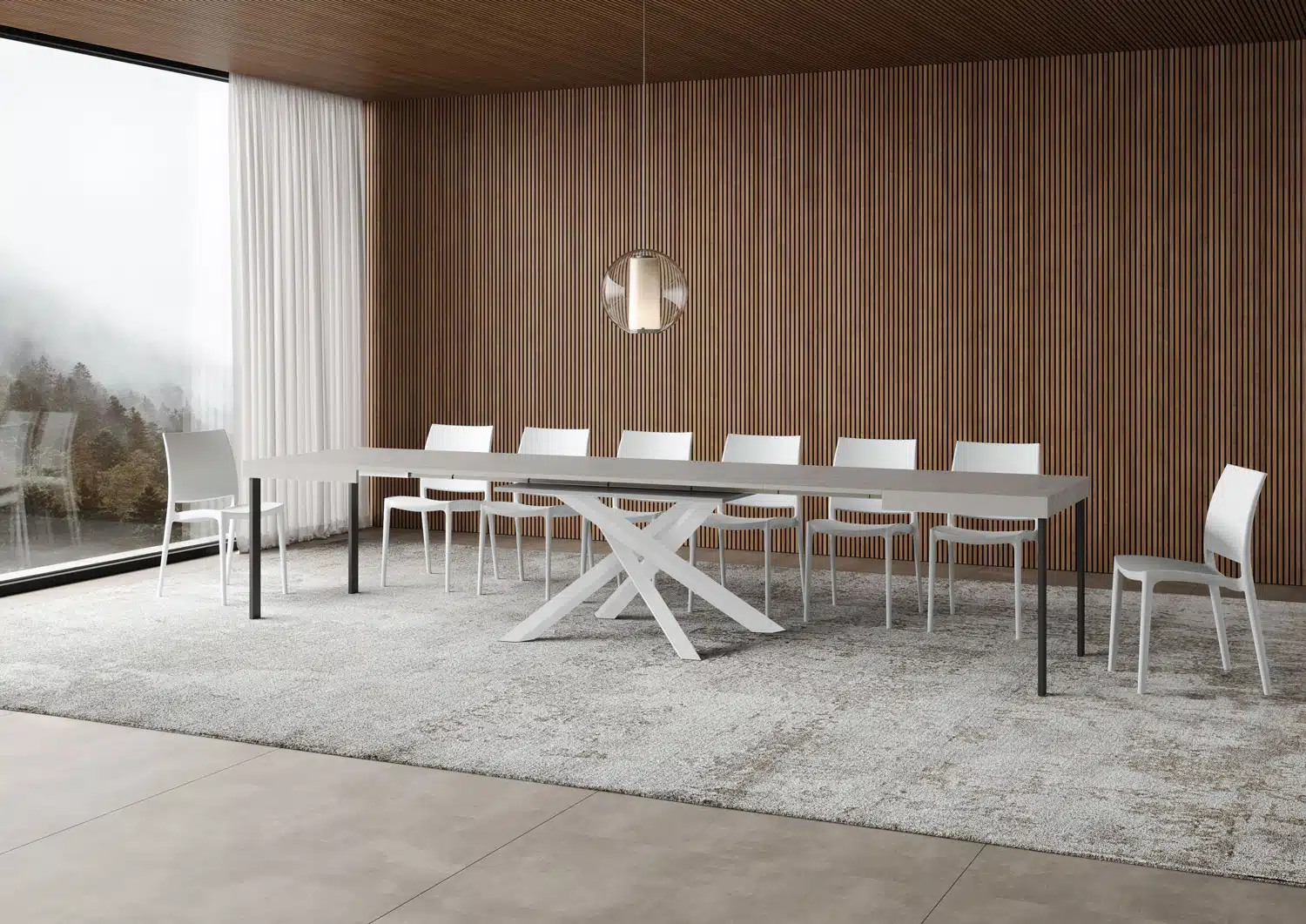 Il tavolo allungabile Volantis è in grado di estendersi progressivamente fino a 400 cm capace di ospitare 18 persone.