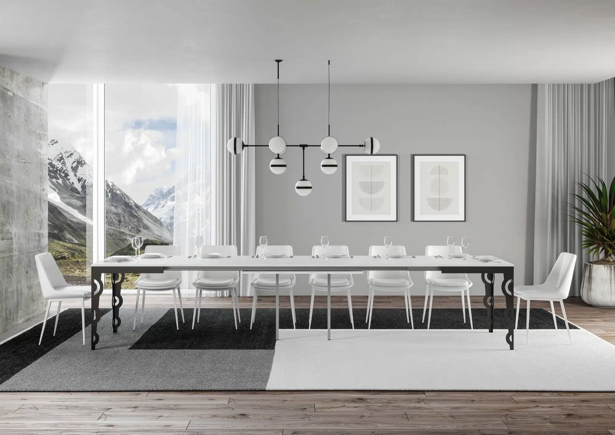 Il tavolo allungabile Karamay Evolution è in grado di estendersi progressivamente fino a 440 cm capace di ospitare 18 persone.